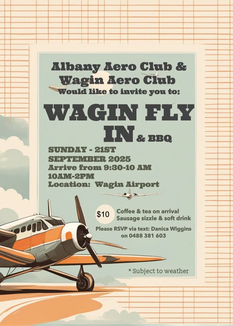 Albany Aero Club and Wagin Aero Club would like to invite you to WAGIN FLY IN & BBQ